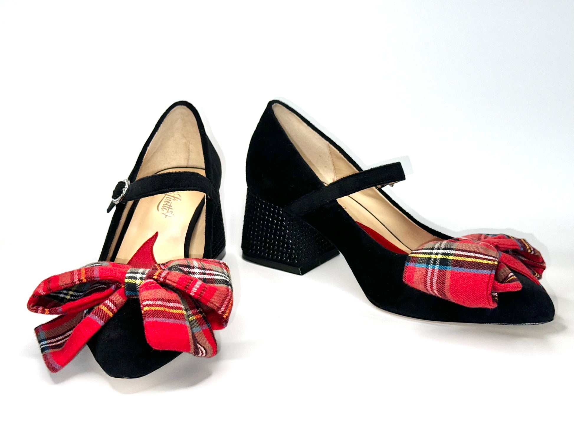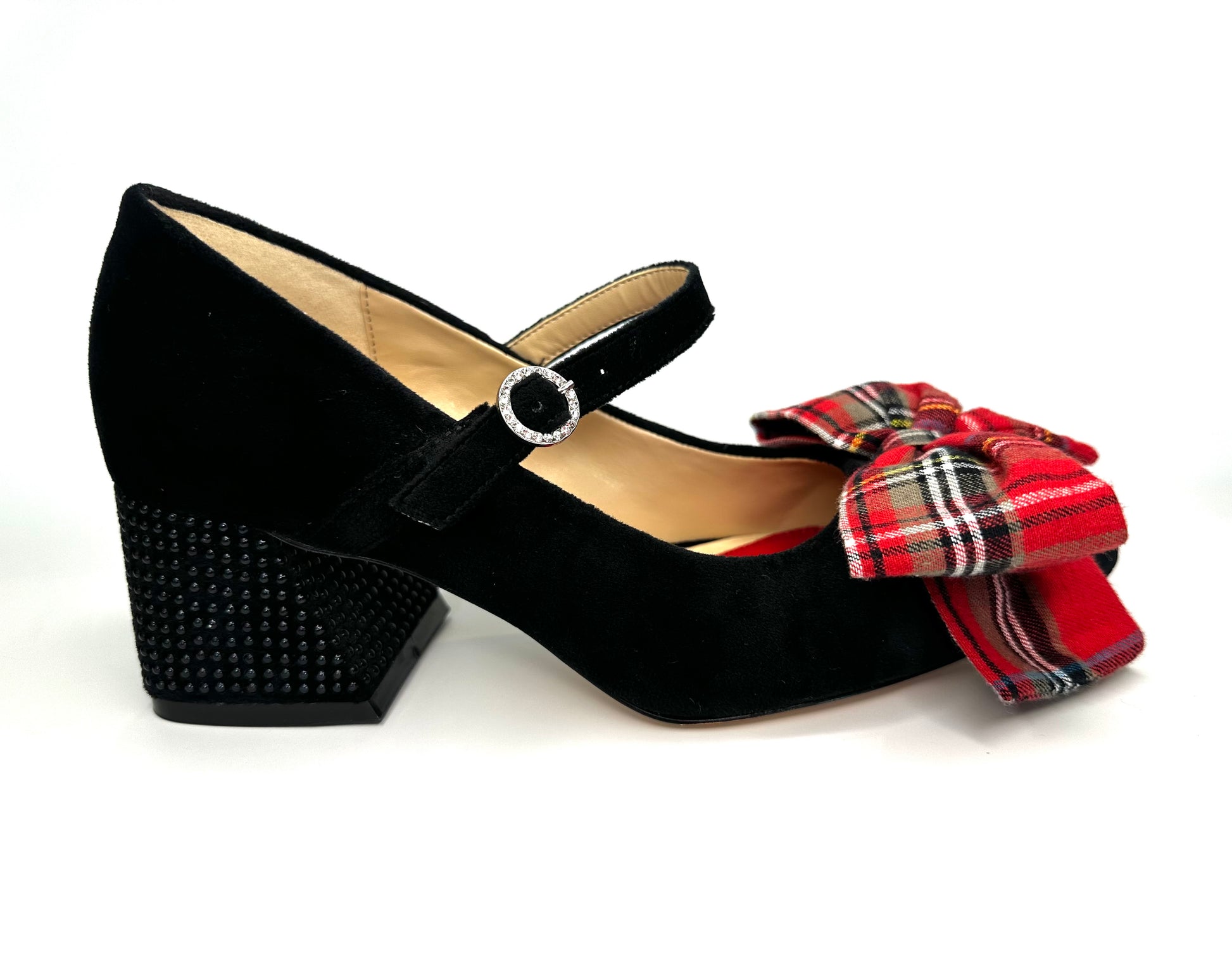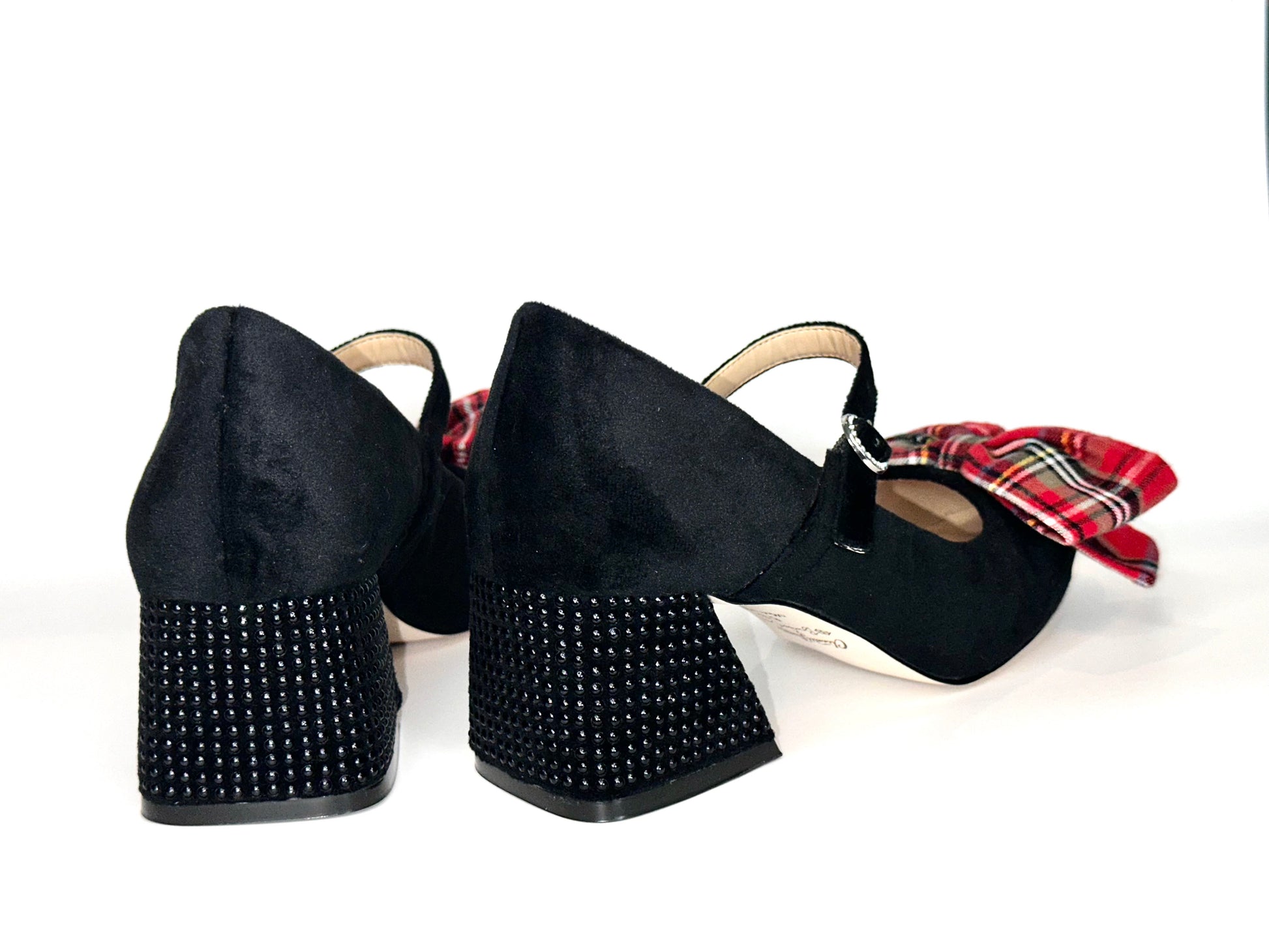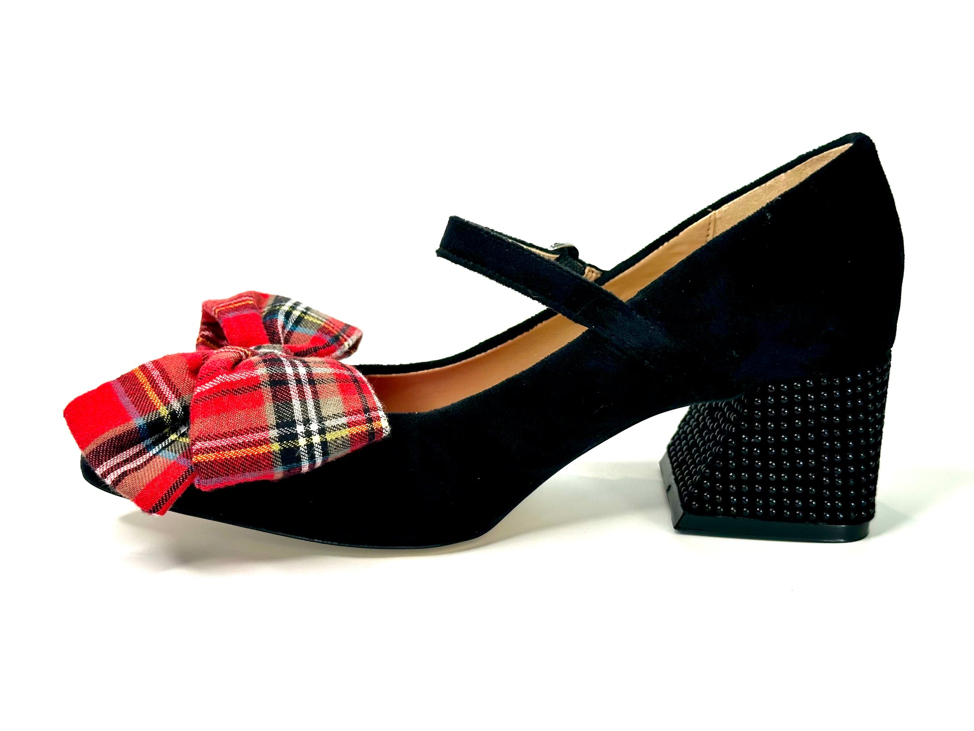 This adorable Mary Jane is supper expressive and just in time for the Holiday parties.In two beautiful colors and supper fun materials to add a little extra to your outfit with a comfortable 2 inch block heel height.